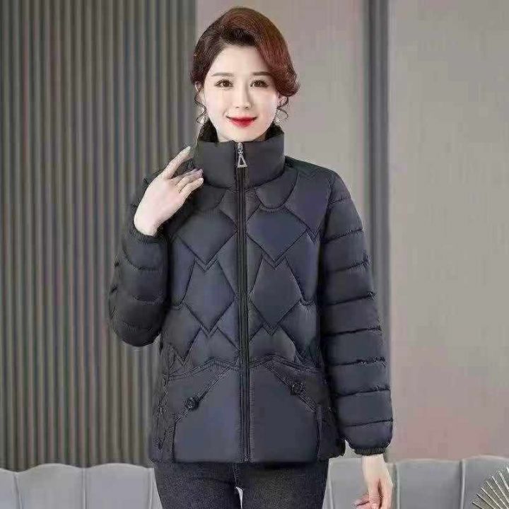 秋冬羽绒棉衣中老年妈妈装女士洋气立领时尚轻薄棉服(...