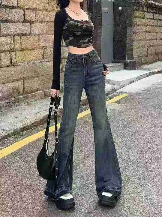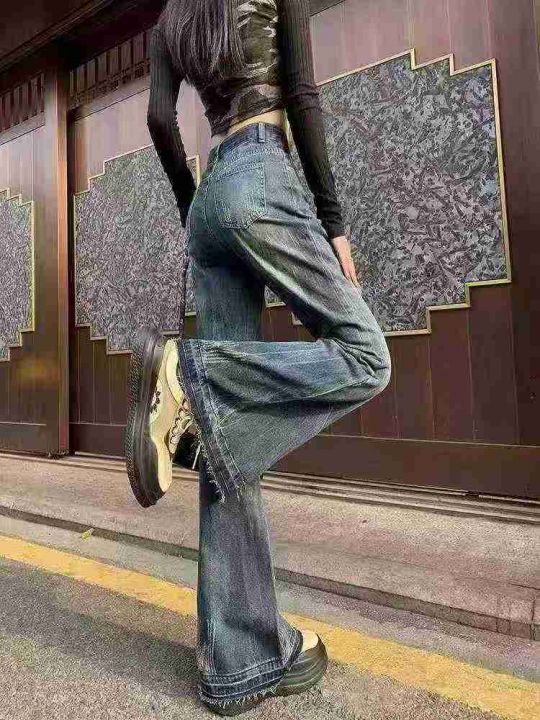 ☕️秋款复古毛边微喇牛仔裤新款高腰显瘦宽松马蹄裤 2...