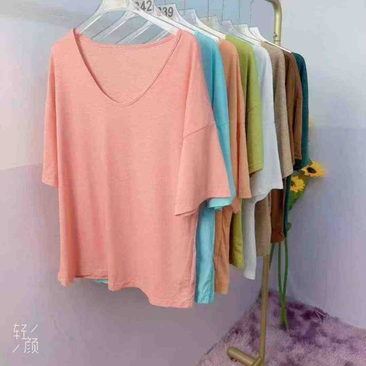 女装大码糖果色半圆V领T恤,莫代尔面料,码数MLXL,面料舒服柔软,货品干净,水袋装,十件一捆100件左右,全清5.8