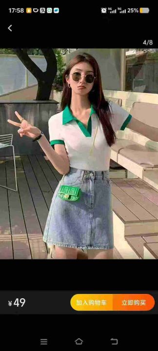 靓妹短袖V领T恤棉质辣妹polo衫,562件,M-2XL,独立包...