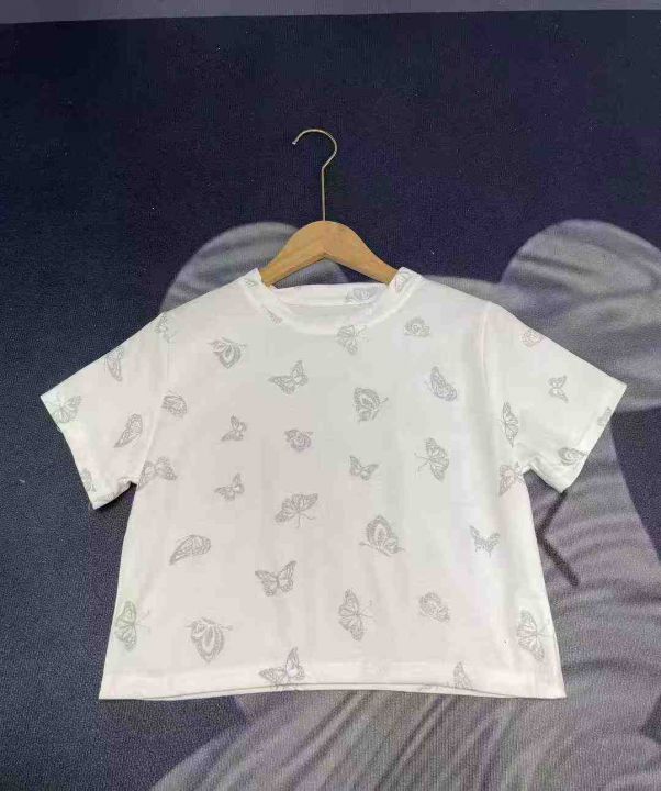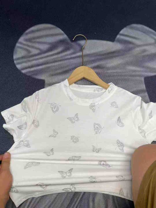 185件高品质纯棉靓妹款蝴蝶短款T恤,单款单色,S-2XL,独立包装