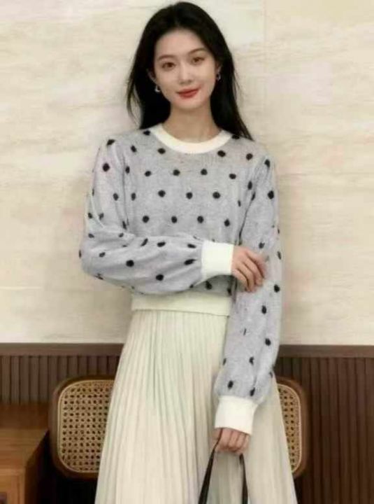 秋冬新款宽松短款慵懒风圆领北极绒套头毛衣,独立包装...