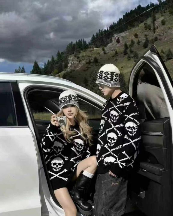 秋冬新款宽松慵懒风男女同款提花套头毛衣,独立包装,...