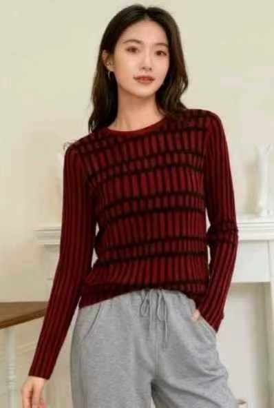 秋冬新款宽松弹力复古提花圆领包芯纱套头毛衣,独立包...