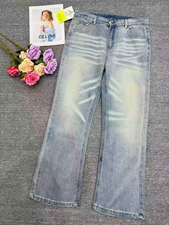 2025水洗冰蓝色磨白猫须直筒微喇牛仔裤男复古百搭宽松裤子情侣,独立包装,...
