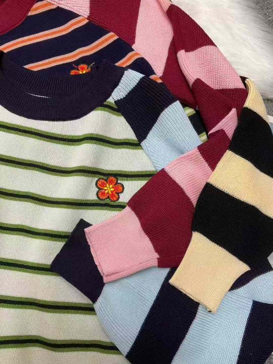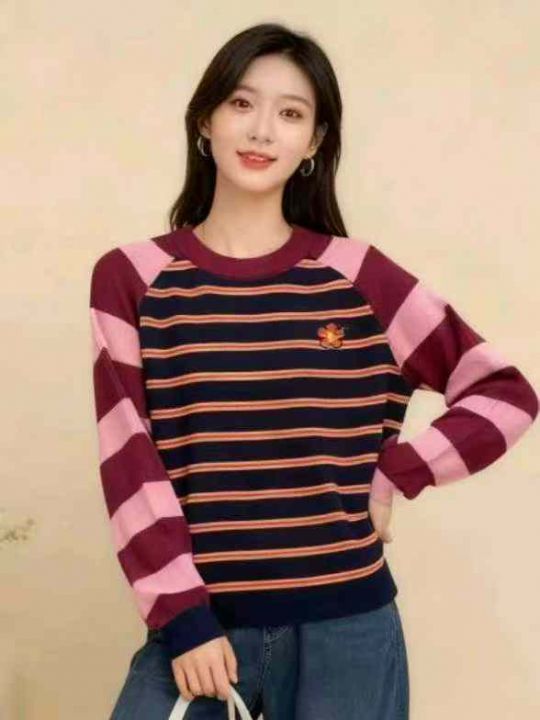 秋冬新款宽松百搭撞色条纹设计感小众刺绣针织套头毛衣,独立包装,均码面料软糯舒适弹力大,800件,全清6.9元超低价秒杀!分货加一!
