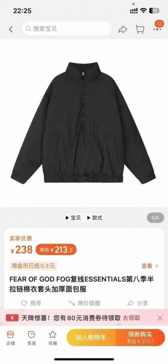 Ess Fog 男女同款第八季半拉链套头加厚 棉服 2000来件...