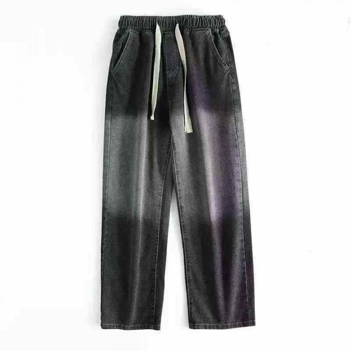 1226条,3个款美式复古直筒渐变抽绳牛仔裤男潮牌街头宽松休闲松紧腰阔腿老爹裤,独立包装,码数S-3XL,全清10.8元,分货➕1