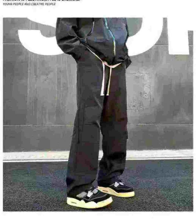 美式冲锋裤男款时尚防风裤子直筒侧拉登山工装裤