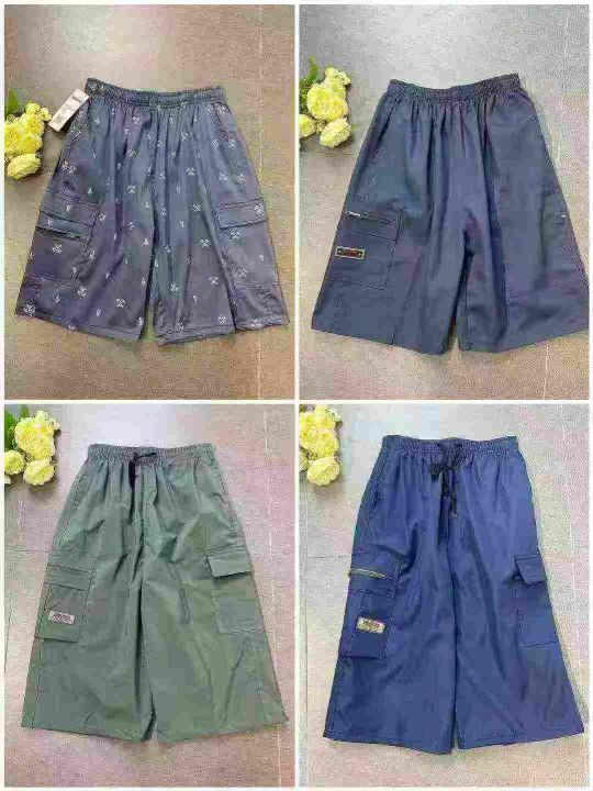下身工装七分裤[太阳]全清8.8、5800件、均码。 夏季新款潮牌男装宽松休闲抽绳松紧腰多口袋拉链百搭七分工装裤,前后都有口袋,腰部有弹力松紧、不挑人、上身效果巨巨巨棒[强]这个价格太靓丽啦[666]部分有吊牌,全部全新独立包装,100件起多款混配9.3