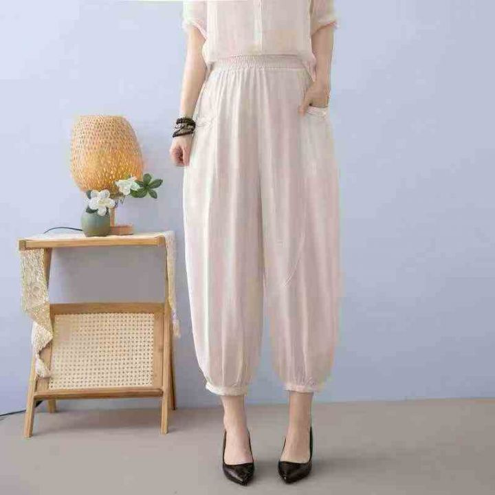 纯色中年妈妈裤棉麻薄款宽松高腰中老年女阔腿裤休闲裤子,数量431件,码数m-5xl,独立包装,全清6.9元