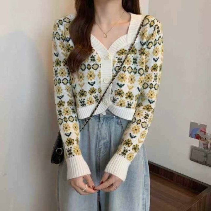 秋冬季新款小香风提花洋气加厚包芯纱短款毛衣开衫,独...