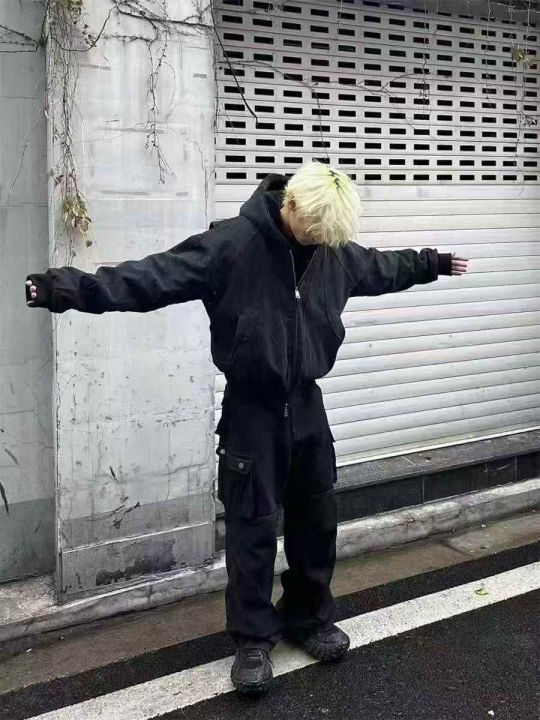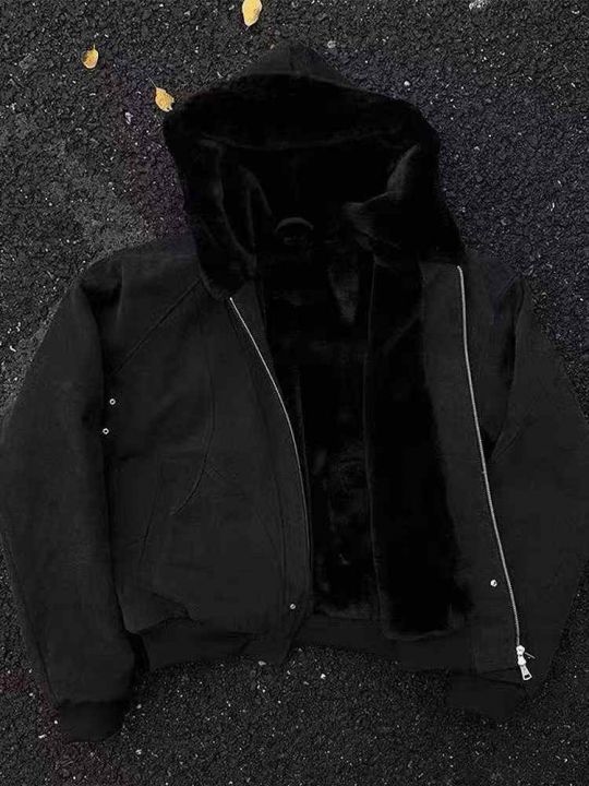 重磅帆布水洗连帽夹克棉服座山雕加绒加厚外套棉服,男...