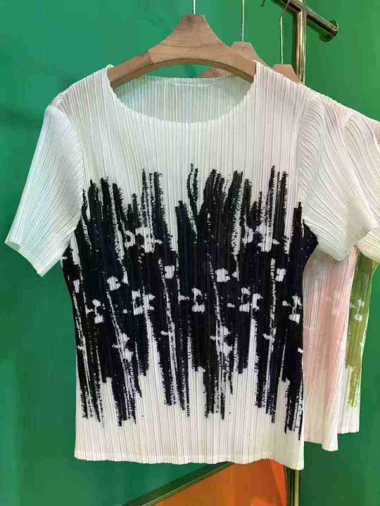 260件左右三宅一生小众印花压褶短袖上衣! 四面高弹!...