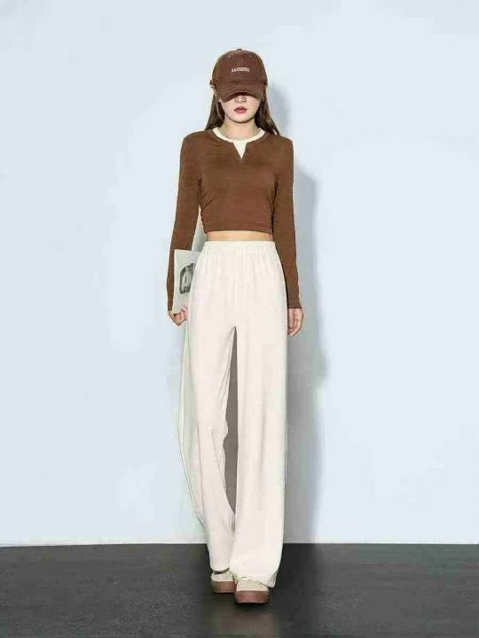 全清价7.9元女休闲舒适高腰休闲垂感显瘦直筒念丝长裤...