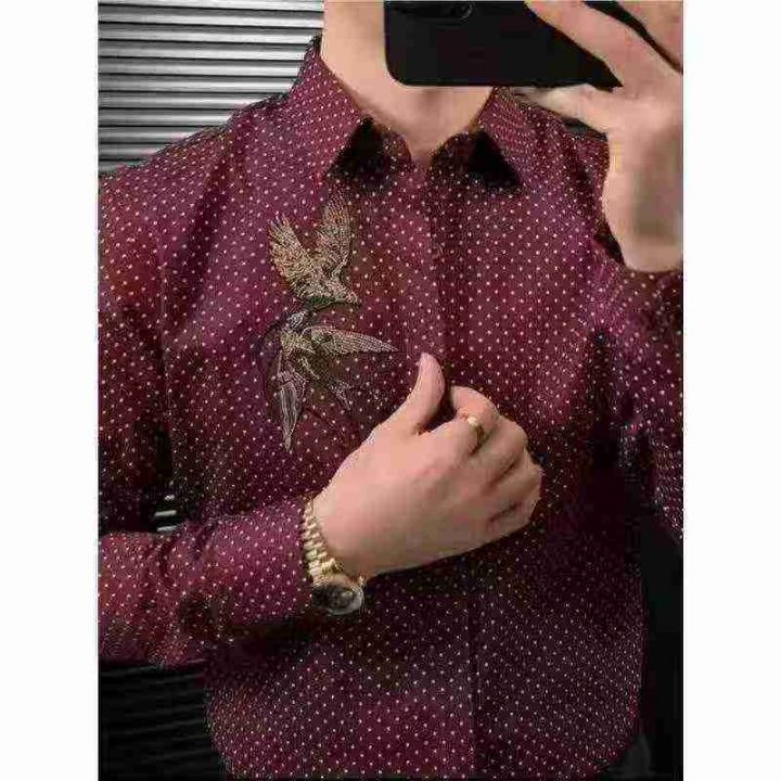 天猫在售款140件左右高品质男装春秋款国风刺绣长袖衬衫,图片两款,M-4XL,独立包装带防伪扣吊牌