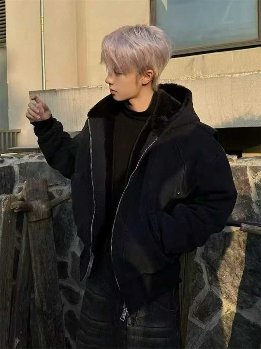 重磅帆布水洗连帽夹克棉服座山雕加绒加厚外套棉服,男...