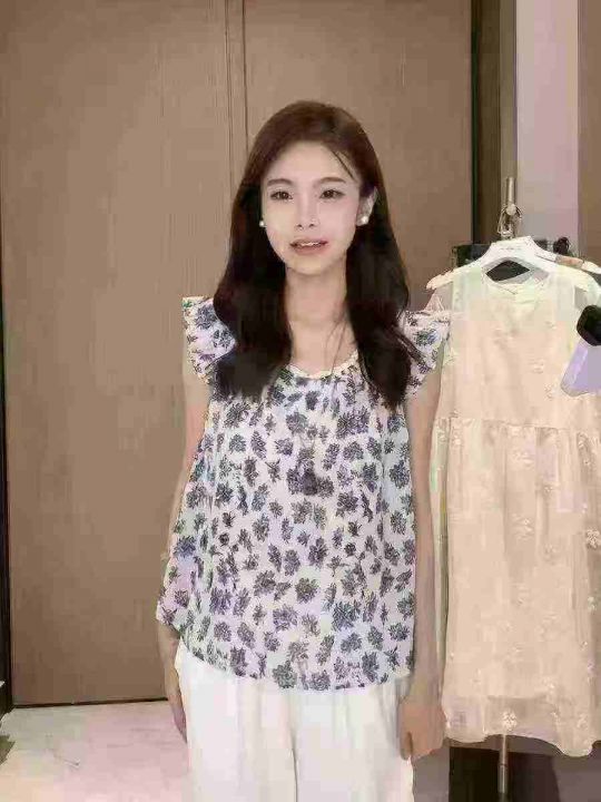 3.8元,女装夏季法式没计感飞飞袖碎花上衣,382件,S-...