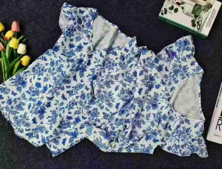 3.8元,女装夏季法式没计感飞飞袖碎花上衣,382件,S-2XL,独立包装,全清3.8元,分货+0.5