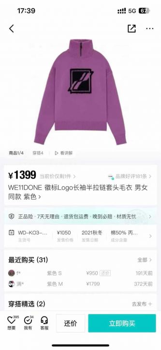 100多件WEIIDONE毛衣。 货号:32539