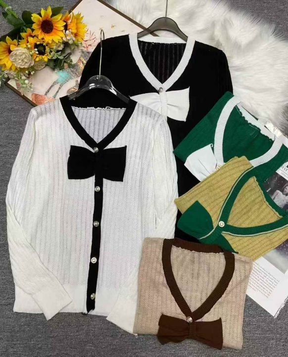 秋季新品优雅气质港风复古chic洋气蝴蝶结名媛小香风长袖针织毛衣,独立包装...