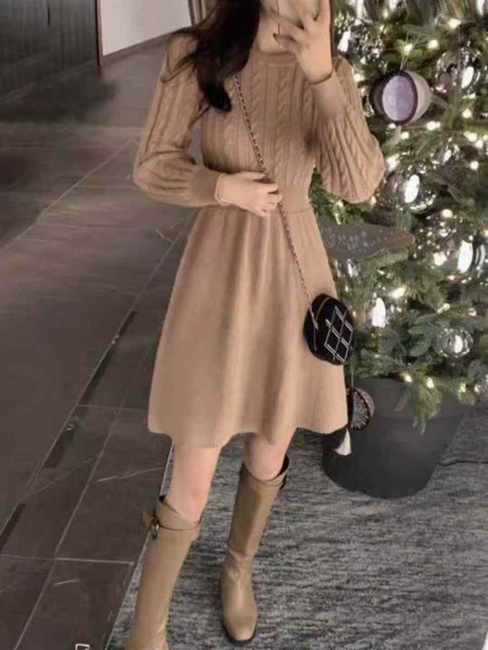 ① 法式复古针织秋冬装网红辣妹风超仙女长款毛衣裙!独立包装,两个颜色,...