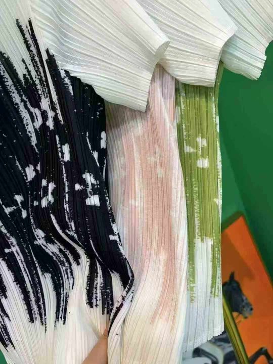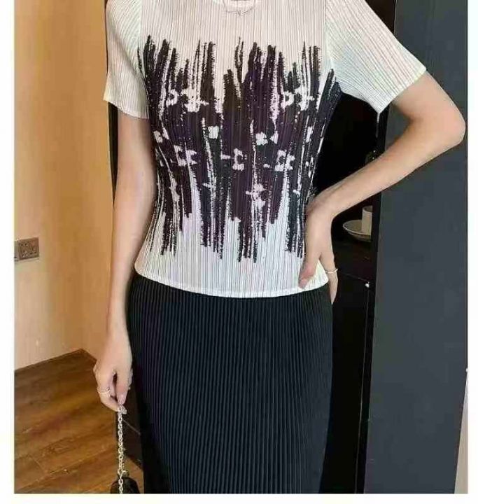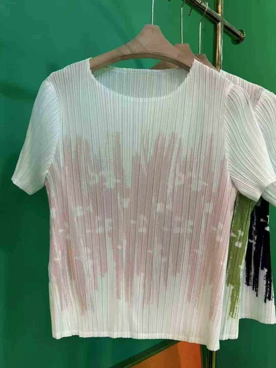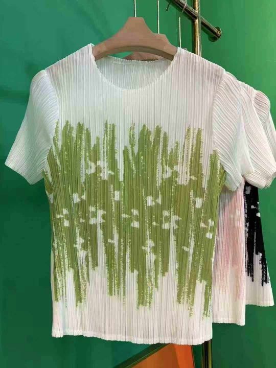 260件左右三宅一生小众印花压褶短袖上衣! 四面高弹!...