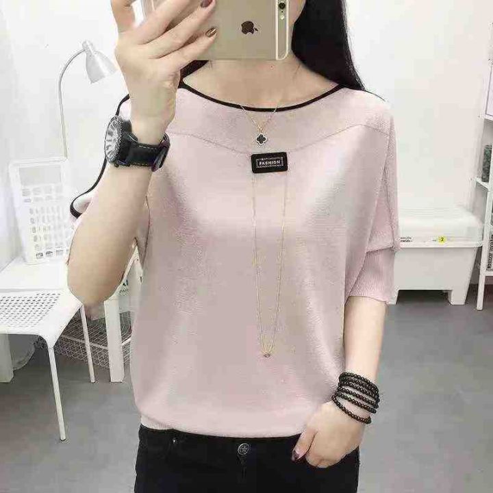 夏季新款胖mm大码冰丝针织短袖T桖,独立包装,均码宽松版,面料柔软舒适有配饰,387件,全清5.9元超低价秒杀!分货加一!