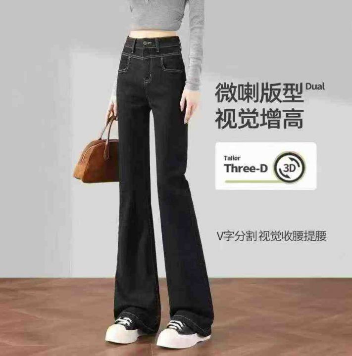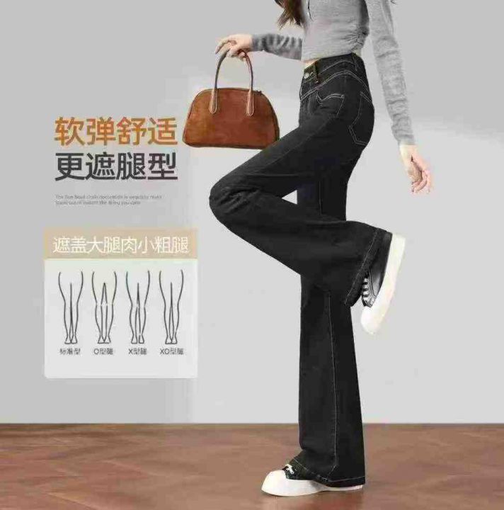 秋季新品洗水棉宽松百搭胖MM复古微喇叭牛仔长裤,独立...