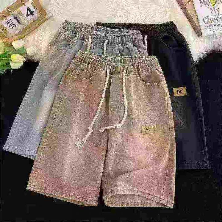 男士复古抽绳牛仔短裤,夏季美式高街设计感小众潮牌五分裤子,码数M,L,XL,500条