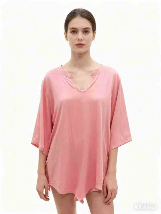 外贸款小V领七分袖T恤女早秋季大码胖mm内搭打底衫不规...