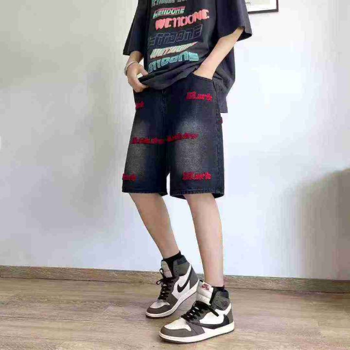 美式男夏季vibe设计感红色刺绣直筒宽松牛仔短裤 数量185件左右 尺码S--3XL 黑色为主(蓝色只有几条) 独立包装带吊牌 货品干净整洁