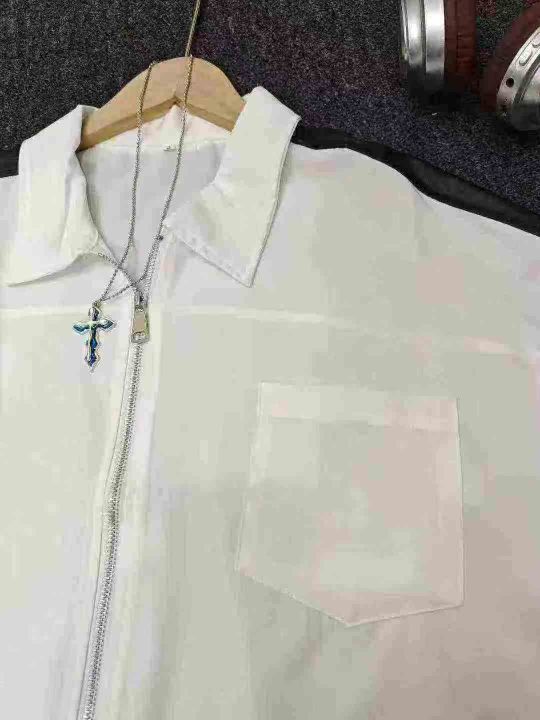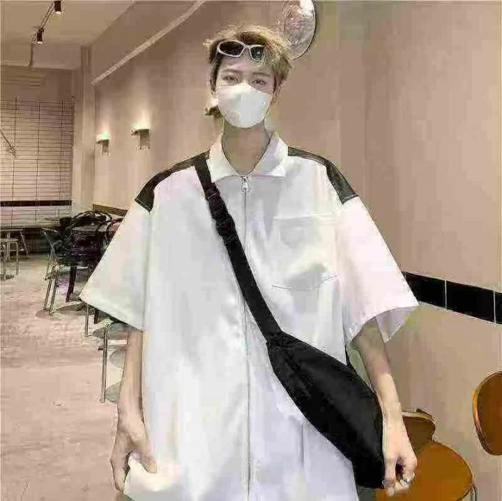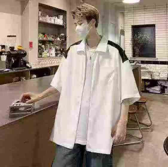 衬衫男夏季小众设计感撞色短袖衬衣美式高街潮牌宽松休闲外套