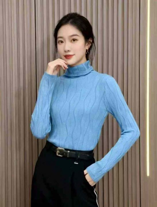 秋冬新款设计感堆堆领洋气弹力修身显瘦打底外穿包芯纱...