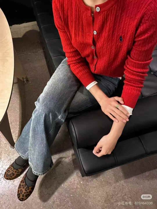 拉夫Polo麻花圆领针织开衫