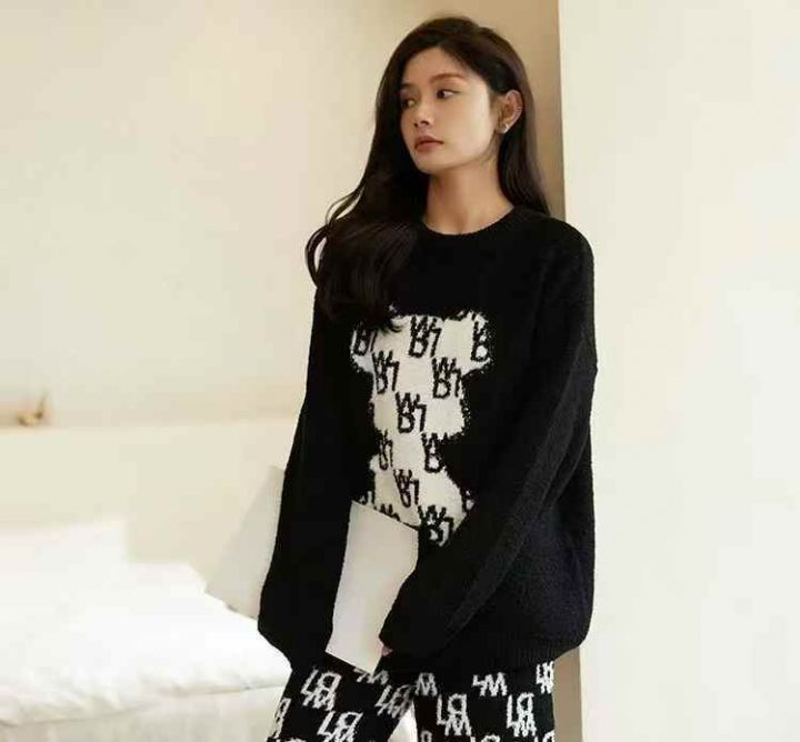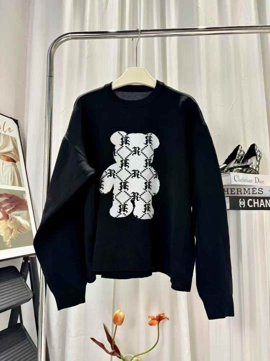 100件韩版圆领宽松男女同款暴力熊卡通毛衣,质量超好...