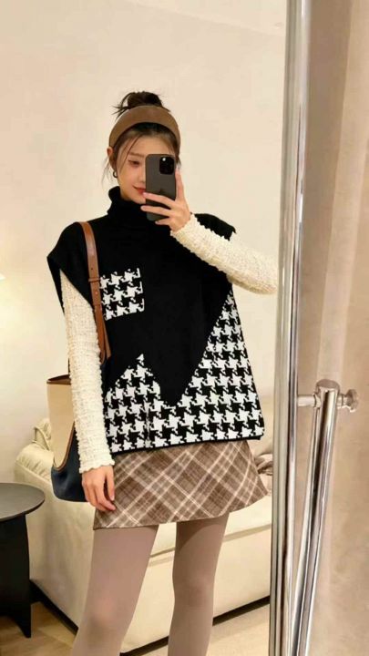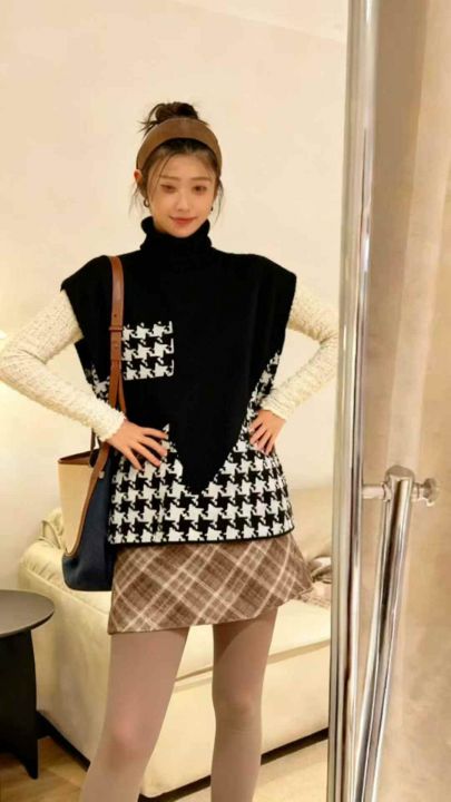 秋冬新款宽松慵懒风加厚北极绒高领毛衣马甲,独立包装...