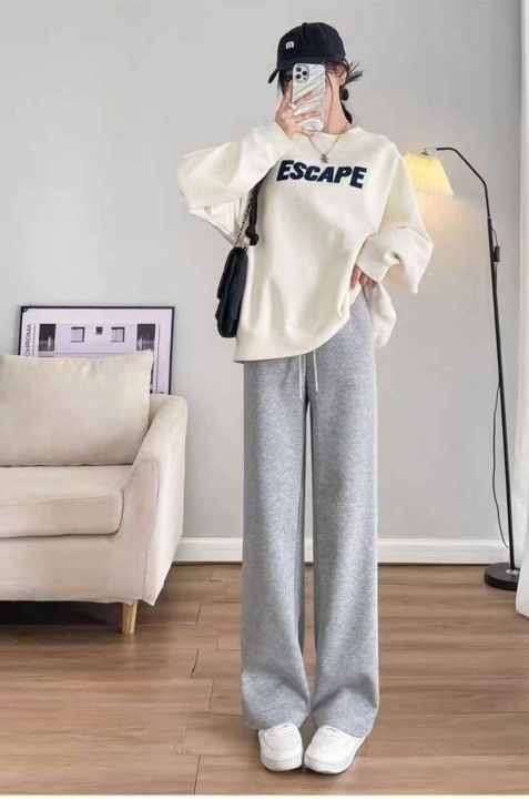 秋季新品窄版阔腿高腰垂感显瘦休闲直筒运动卫裤,独立...