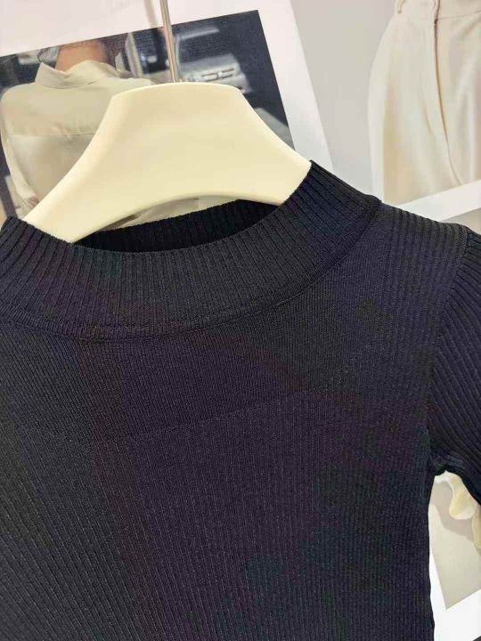 73件韩系靓妹款黑色圆领喇叭袖包芯纱针织衫女早秋小个子修身显瘦内搭气质打底上衣,质量很好!均码!高弹力!独立包装!零瑕疵便宜清4.9 不分货
