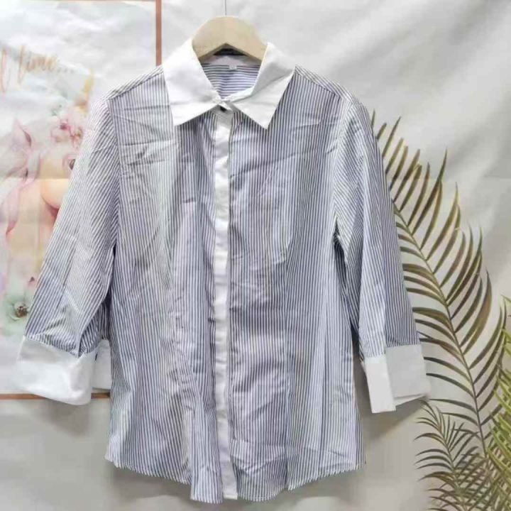 2.5元秒杀[庆祝][庆祝] 新款条纹修身休闲气质正装衬衣,独立包装,白色位置有黄点,码数s-xl,数量135件。