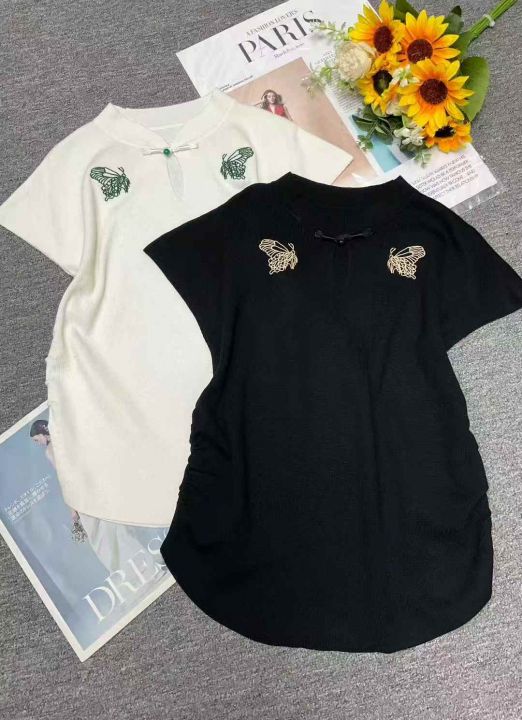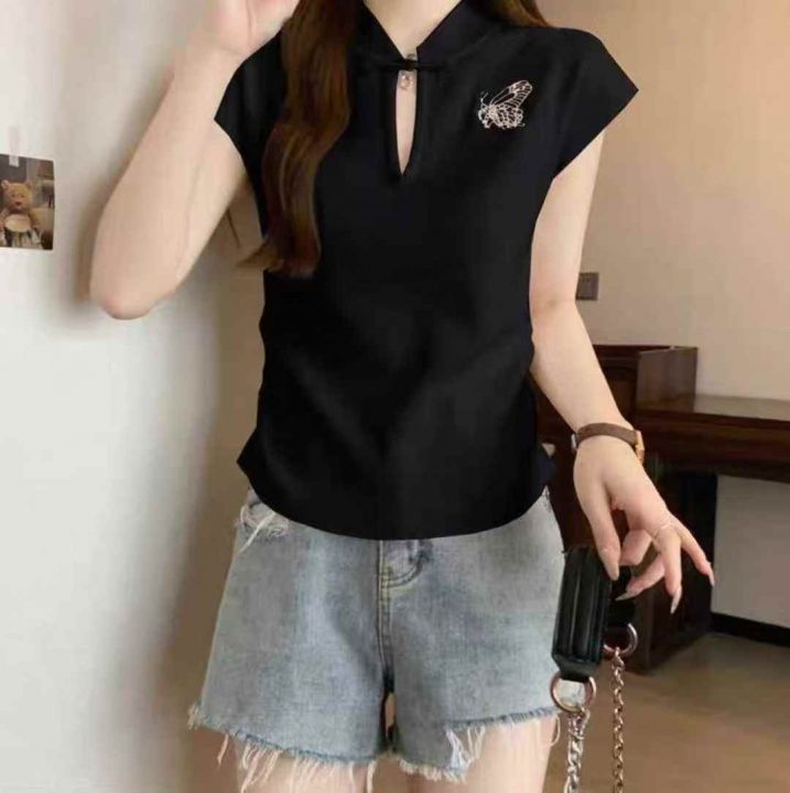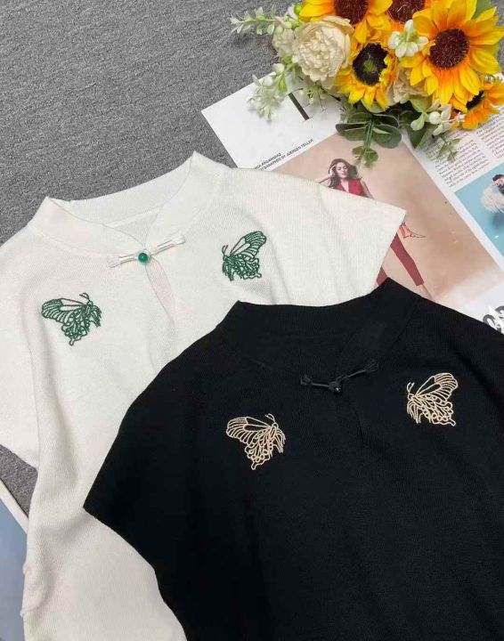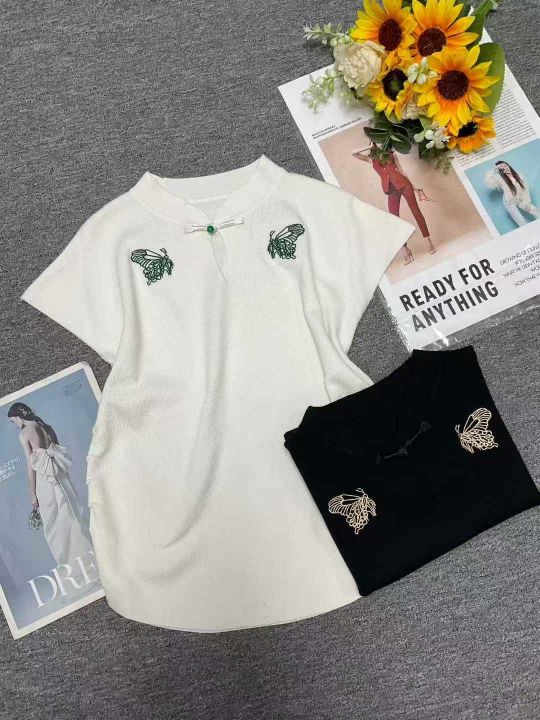 夏季新款冰丝刺绣弹力修身显瘦新中式国风气质针织衫,独立包装,均码面料柔软舒适,170件,全清6.9元超低价秒杀!