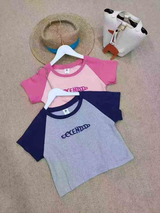 [月亮]:纯欲风美式辣妹刺绣短袖T恤