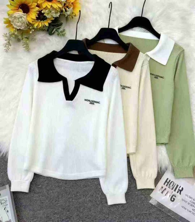 秋季新品撞色刺绣字母小清新百搭polo领针织套头毛衣,独立包装,均码面料柔软舒适弹力大,298件,全清6.9元超低价秒杀!分货加一!