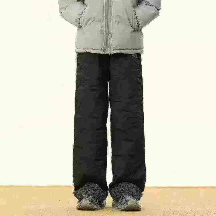 防寒休闲羊羔保暖裤男女冬季潮宽松葫芦纹防水直筒裤加...