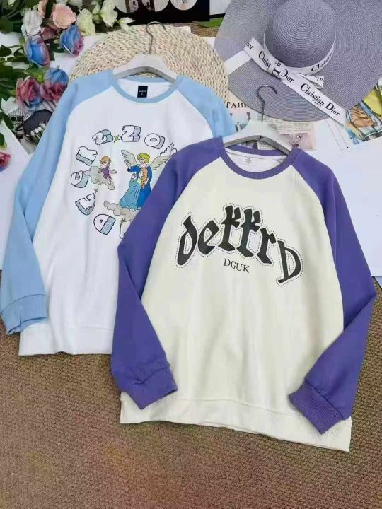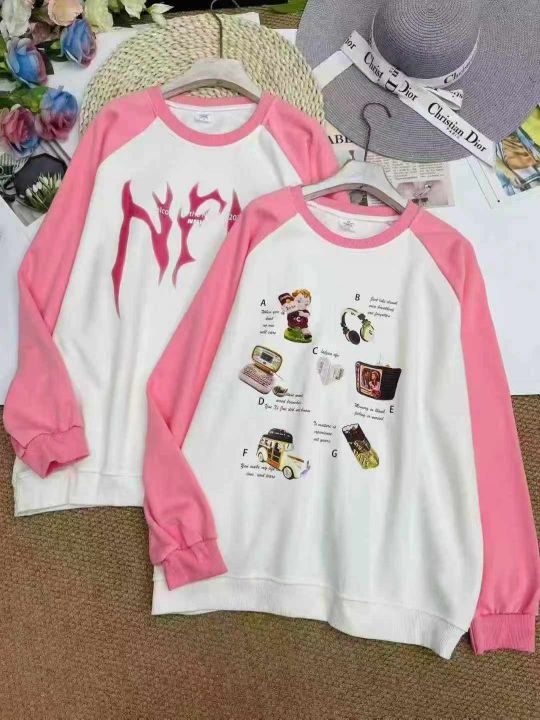 1055件高品质韩系靓妹大版宽松休闲气质长袖T恤上衣,纯棉后领包边,小整杂...
