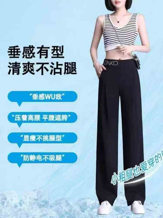 190条冰丝阔腿裤子女夏季薄款垂感梨形身材显瘦春秋直筒裤休闲西装裤,尺码M-3XL,有弹力!独立包装!零瑕疵!全清9.9