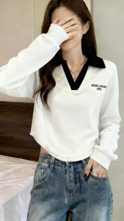 秋季新品撞色刺绣字母小清新百搭polo领针织套头毛衣,...