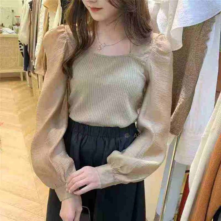 150件左右2025新款韩版方领泡泡袖法式靓妹T恤长袖上衣...