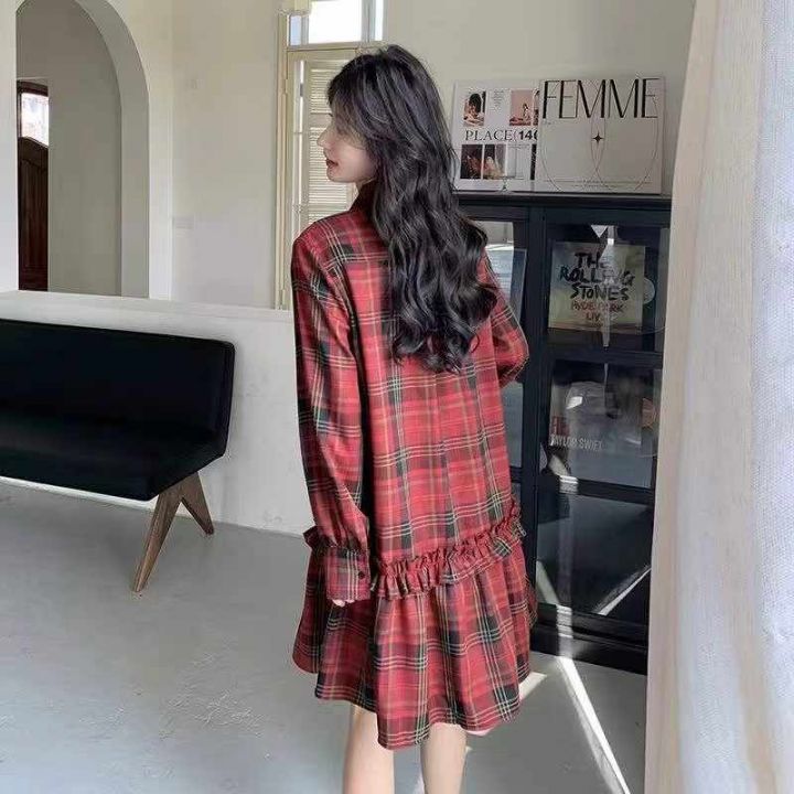 复古格子连衣裙121件9.9,翻领荷叶边,褶皱拼接,码标...
