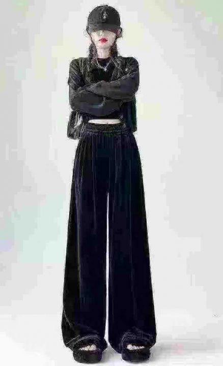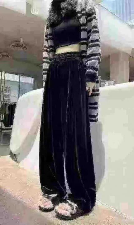 金丝绒秋冬新款垂坠感高腰显瘦百搭宽松高腰休闲开叉阔腿裤,独立包装,弹力大,码数S-4XL(1-7),数量331条